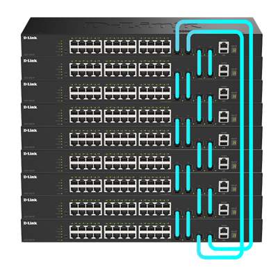 • Physical stacking up to 9 switches