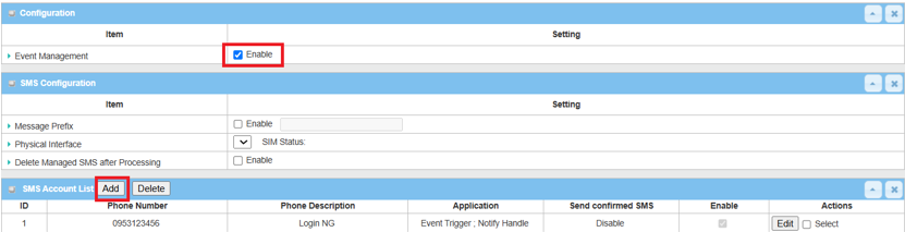 This feature is applicable to remote devices when someone else wants to log in to the device, so that users can get real-time responses, saving time and effort. In this example, we will demonstrate SMS configuration rules for M2M devices and how to set trigger events from M2M devices and send SMS messages to users instantly.
