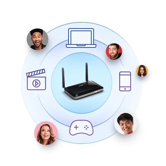 Router DWR-921 je také připraven pro případný výpadek pevného připojení k internetu. Podpora dvoupásmového připojení 4G LTE/3G vás v případě výpadku sítě 4G přepne do 3G, zatímco dodatečná možnost xDSL / FTTH Ethernet WAN poskytuje bezporuchové připojení, pokud selže vaše pevné nebo mobilní širokopásmové připojení³
