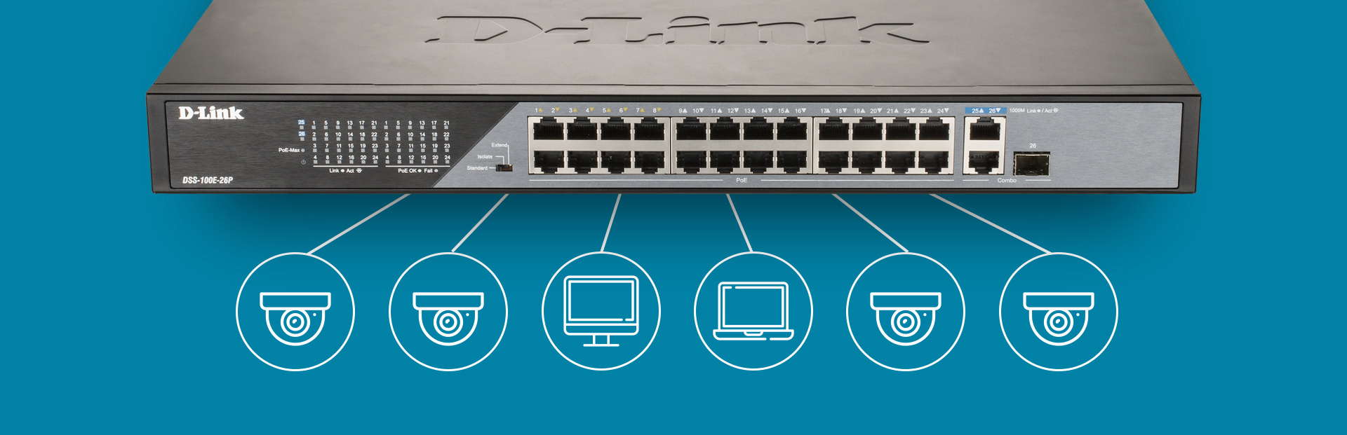 The DSS-100E-26P is not just for cameras, it’s ready to support other surveillance-related devices as well. Simply plug in the devices you need to complete your setup; the switch can then automatically detect what has been connected. It then adjusts accordingly to provide optimal performance. Ideal for a power surveillance with minimal management fuss.