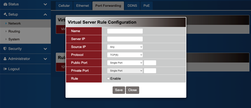 1. Enable Port Forwarding: Go to Network> Port Fowarding