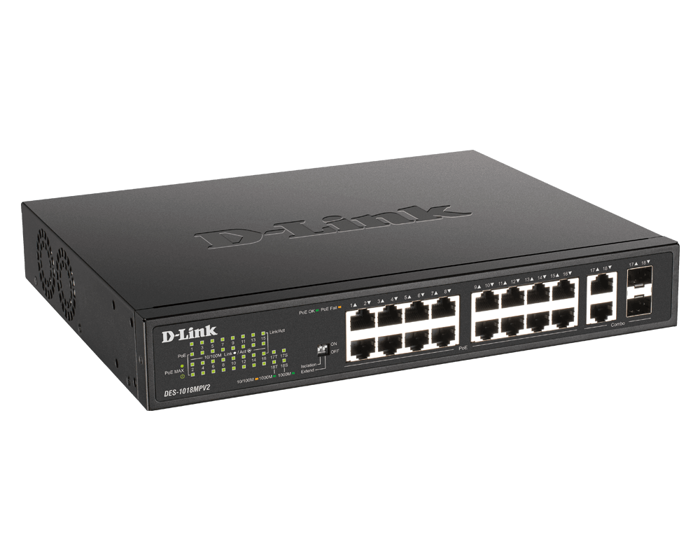 The DES-1018MPV2 is specifically designed to facilitate easy connections and supply of power to devices such as access points (AP) or IP cameras and phones. But that’s not all, connect other Ethernet devices such as computers, printers and NASs to unify all your devices under one efficient network ready for any application.