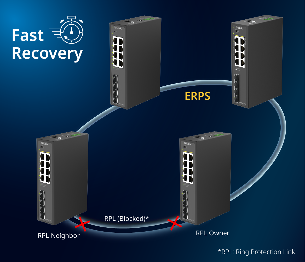 ERPS ensures fast recovery, reliable connectivity, and seamless network restoration