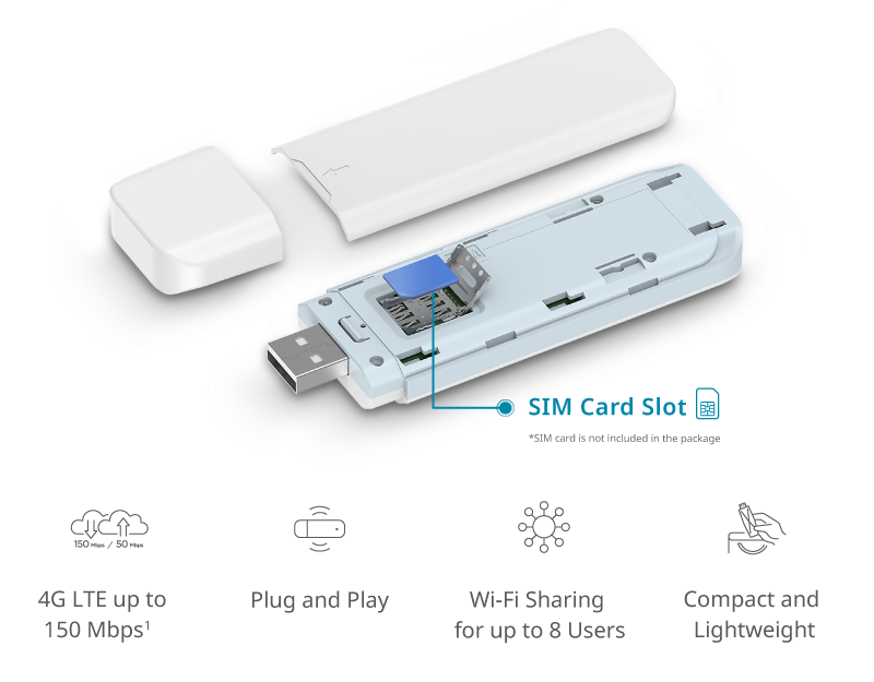 將您的 4G LTE 連線變成個人 Wi-Fi 熱點,可同時分享給最多 8 位使用者。無論是商務差旅、活動聚會、團體旅行,或同時連接筆電、平板和多個裝置,都是完美的解決方案。這款功能強大的小巧行動網路卡,讓大家只需一個網路方案就能隨時保持上線。