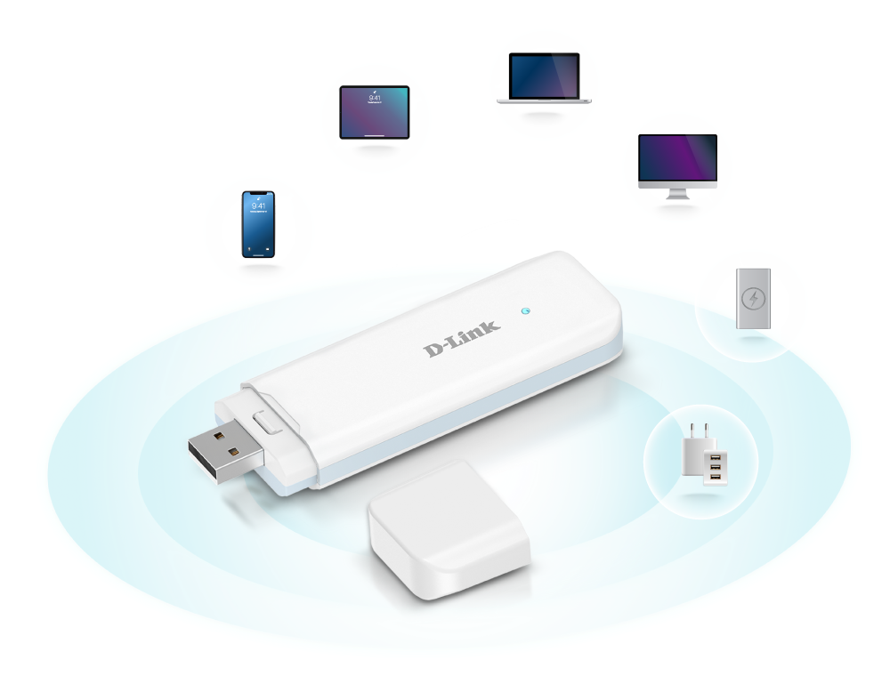 DWM-222W 4G LTE AX300 USB 行動網路卡,內建 Wi-Fi、SIM 卡槽,支援隨插即用,專為行動生活而設計。