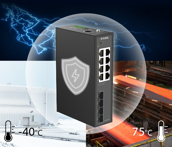 The DIS-210G-12 is built with a rugged, durable design ideal for harsh environments such as outdoor installations, unconditioned factory floors, and remote sites. With a wide operating temperature range of -40°C to 75°C, it ensures stable and reliable performance even in extreme conditions. Its industrial-grade IP40-rated enclosure protects against dust and solid particles larger than 1mm, while the fanless design and 6kV surge protection on all Ethernet ports help reduce the risk of downtime and enhance long-term reliability.