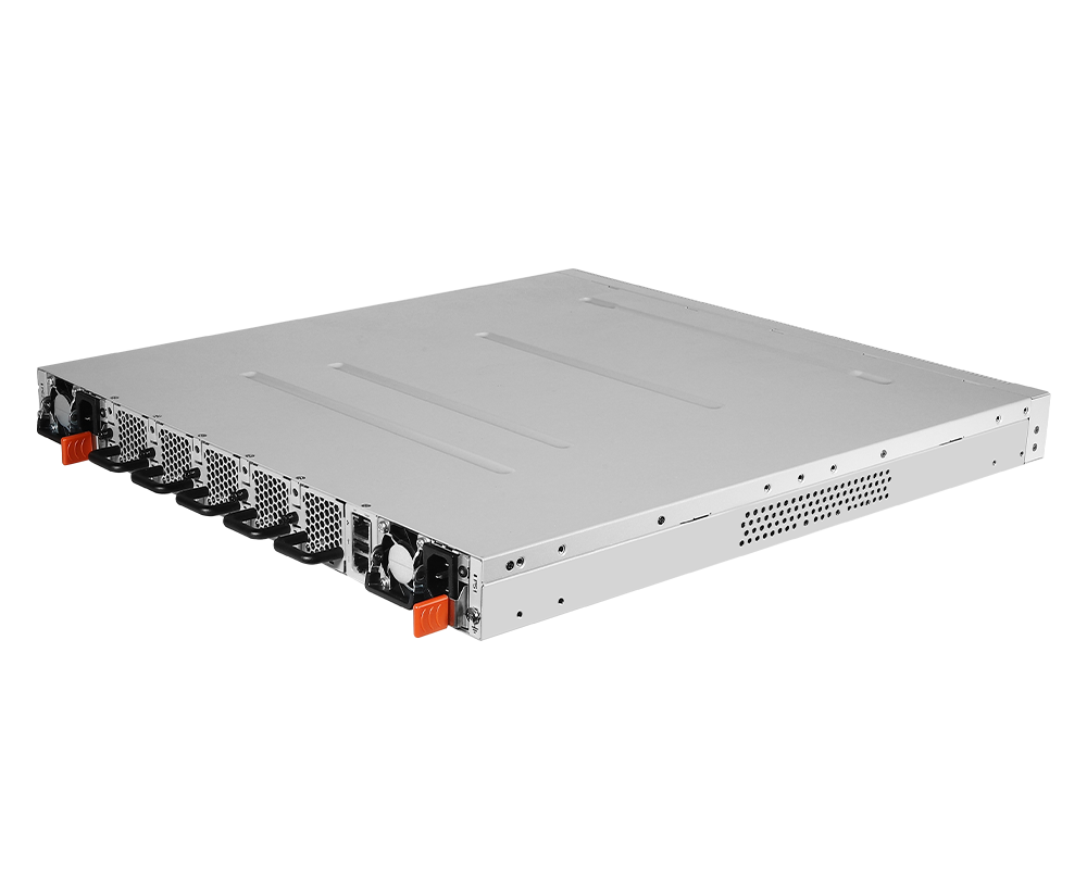 Front-to-back airflow, 1+1 hot-swappable PSUs, and N+1 fans ensure cooling and uptime reliability