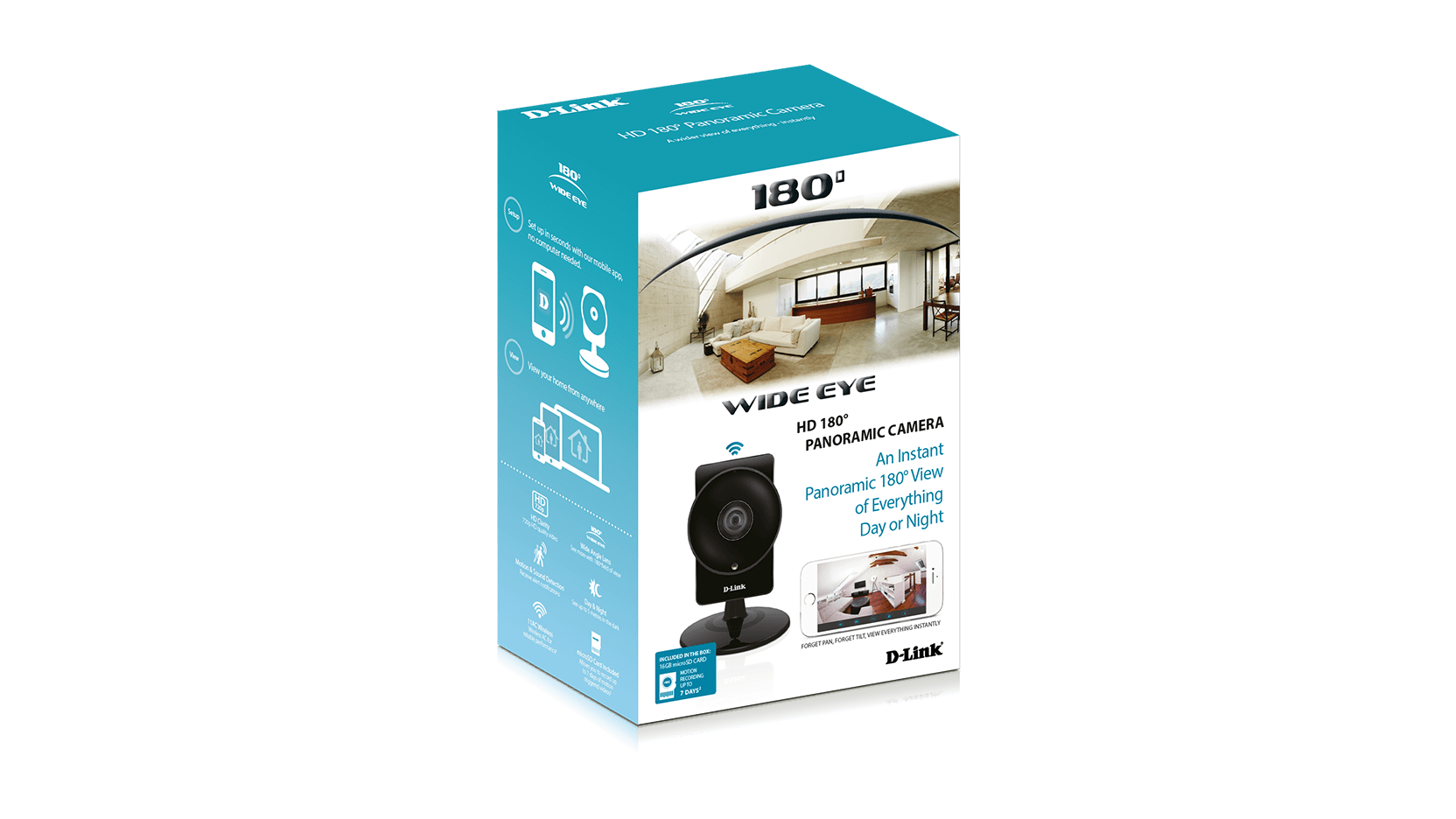 Unlike traditional cameras, the revolutionary DCS-960L uses an ultra-wide view lens to give you a full 180° field of view, letting you cover an entire room with a single camera. Forget about pan and tilt cameras, view everything instantly in real-time.