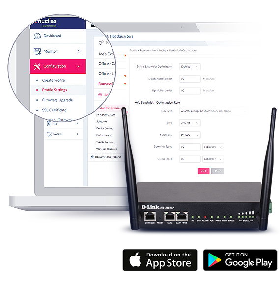 The DIS-2650AP can work as a standalone device but can also work with Nuclias Connect - a free software-based management platform (with optional hardware controller) that can be used on-premises, or as a cloud solution hosted on a public cloud service. Admin tasks can be swiftly carried out from the Nuclias Connect app, or server/PC-based software for easy access, easy automation, and easy network scalability.