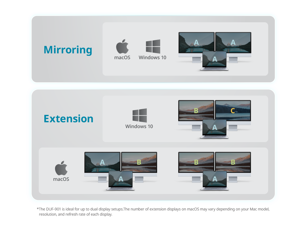 Avec la DUF-901, vous pouvez choisir entre la mise en miroir ou l’extension avec un écran de haute qualité prenant en charge jusqu’à 8K. Parfaite pour les créatifs, les professionnels et les amateurs de technologie ou de divertissement, elle offre des visuels époustouflants et des performances fluides pour améliorer la productivité et l’expérience utilisateur.