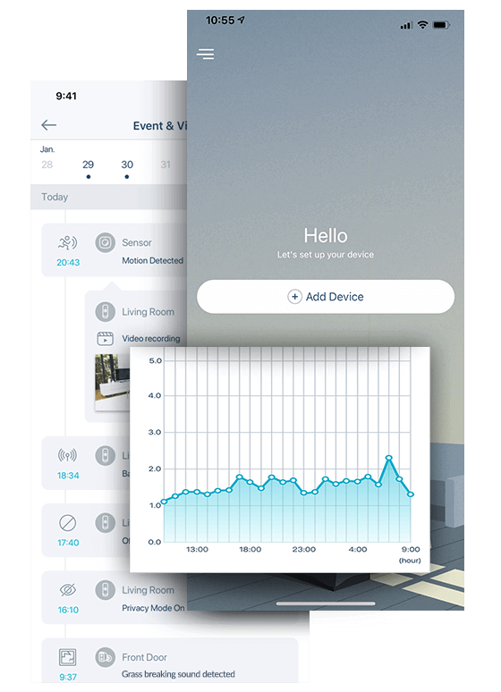 Houd uw huis in de gaten terwijl u weg bent, sla uw favoriete herinneringen 1 jaar gratis op in de cloud en bedien uw smart home gadgets, waar u ook bent.