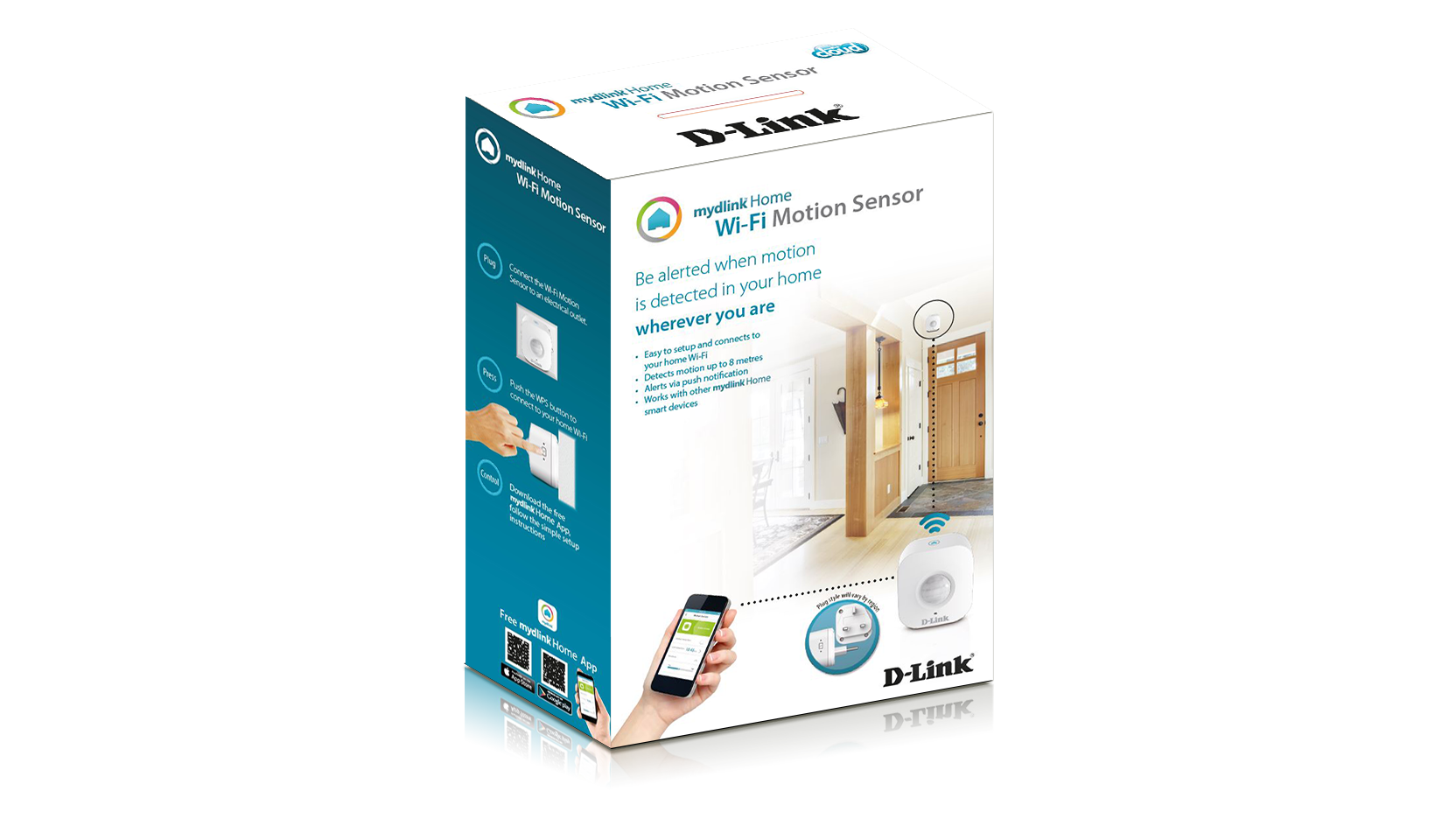 "Beweegt er thuis iets? Waarschijnlijk is het de hond of de postbode, maar u hoeft het zich niet langer af te vragen. Uw Wi-Fi Motion Sensor werkt samen met uw mydlink™ Home monitor. Als er beweging wordt gedetecteerd, ziet u direct op uw smartphone wat er gebeurt. "