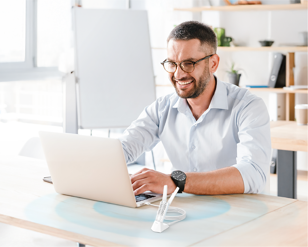 Get wider, stronger coverage with two 180° adjustable antennas and a detachable cradle with extension cable, the AE65U allows flexible placement to maximize signal reception. Easily expand your PC’s Wi-Fi range and stability.