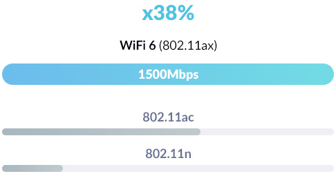 Haal snelheden tot 1,5 Gbps in huis met next generation Wi-Fi 6. Ervaar snelheden die maar liefst 38% hoger zijn dan Wireless AC, voor nog vlotter browsen, 4K-streamen en online gamen.