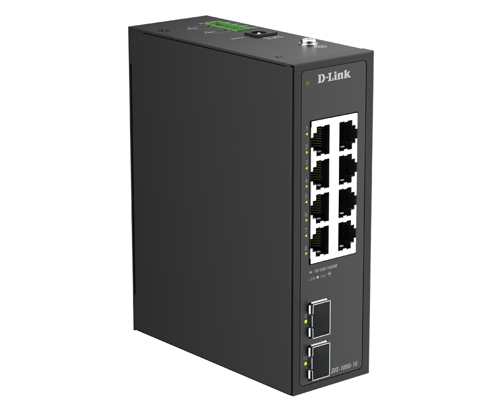 The DIS-100G-10 is an industrial unmanaged switch equipped with eight 1G ports and two SFP ports, providing plug-and-play simplicity deployment. The SFP ports support long-range data transmission, removing the distance limitations of traditional Ethernet cabling. With reliable, high-performance operation, it ensures real-time data transfer and seamless connectivity for applications such as Kiosk, digital signage, LED displays, and more.