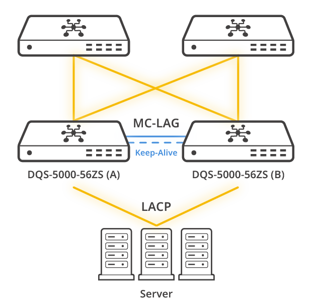 In tegenstelling tot traditionele LAG kunnen apparaten met MC-LAG tegelijkertijd verbinding maken met twee onafhankelijke switches, waardoor continuïteit van de service wordt gegarandeerd, zelfs als één switch niet beschikbaar is.