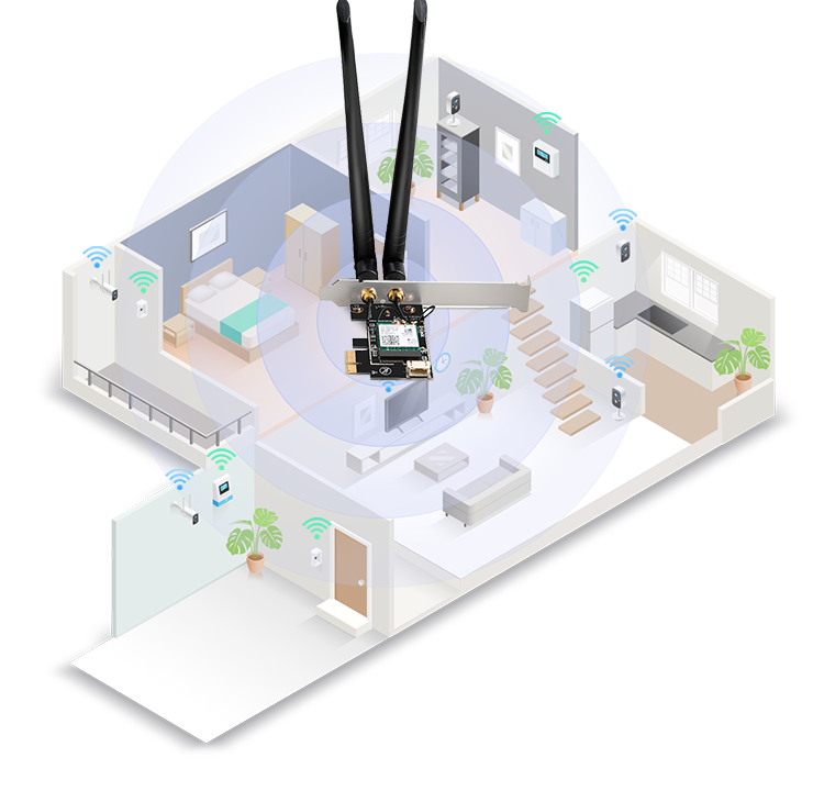 With Wi-Fi 6 speeds of up to 2.4 Gigabit per second, download large files in seconds, stream 4K videos without stutter, play online games and enjoy an immersive VR experience with incredible responsiveness. Work or play, take it to the next level with the AX3000 Wi-Fi 6 PCIe Adapter.
