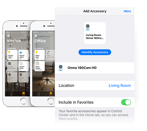 Kamera Omna 180 HD také skvěle funguje s ostatními zařízeními Apple HomeKit. Ovládejte snadno svůj domov, zapněte osvětlení nebo chytrou zásuvku, nastavte termostaty nebo zvukové alarmy s detekcí pohybu.