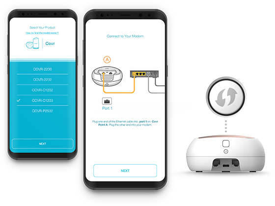 Vy si jen stáhnete aplikaci do svého telefonu, připojíte jednotky Covr do el. sítě a postupujete podle instrukcí v aplikaci. Tlačítko WPS umožní připojení ostatních zařízení jedním stiskem (ostatní zařízení musí rovněž disponovat WPS tlačítkem).
