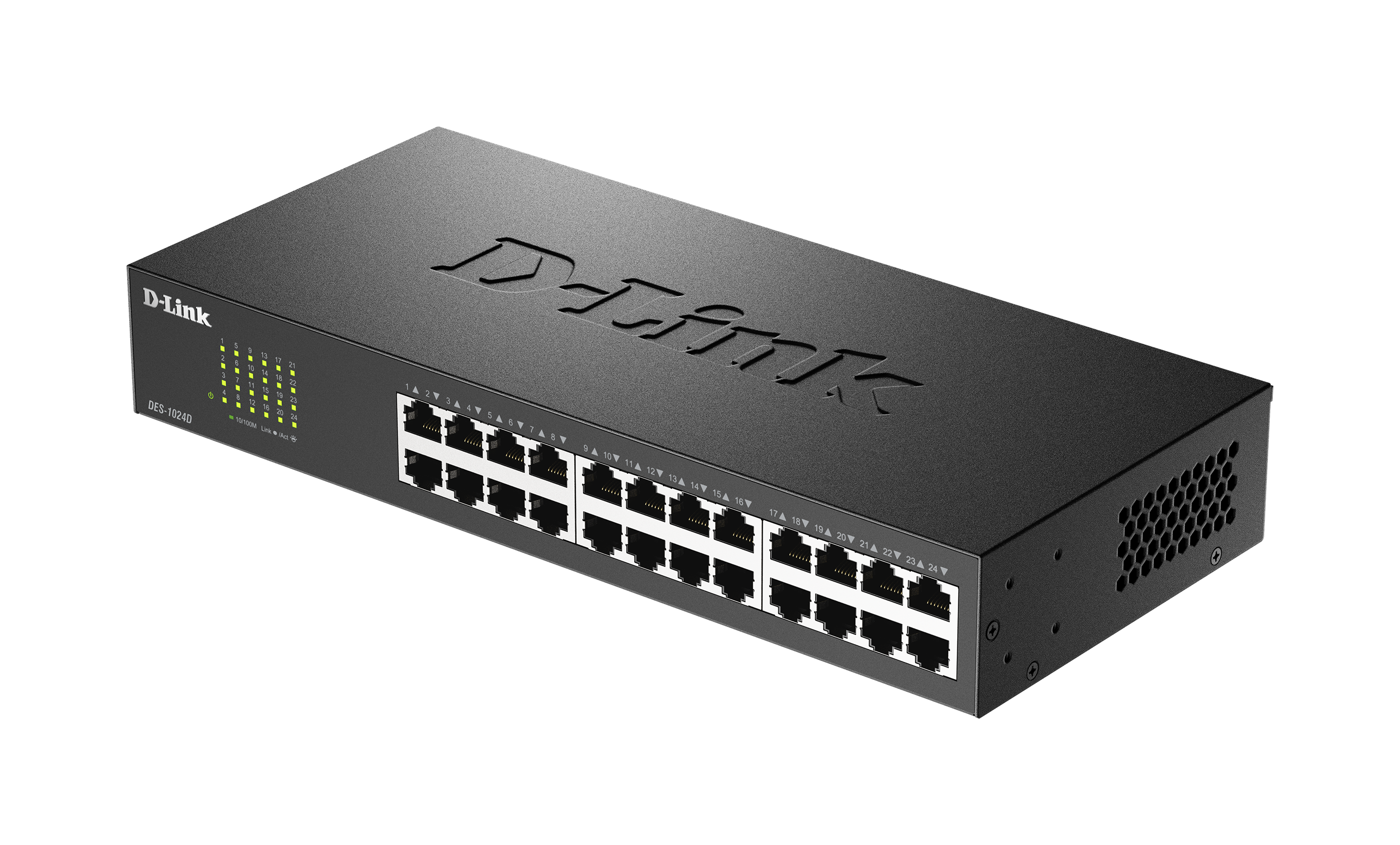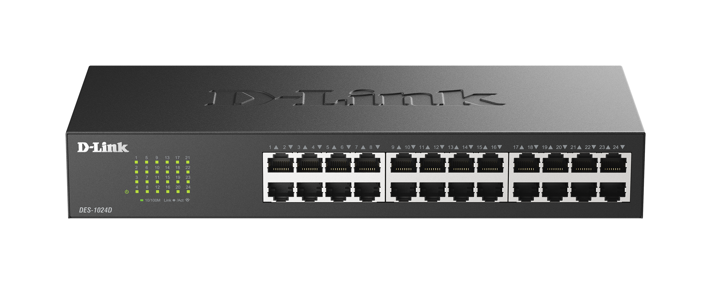 Neřízený Fast Ethernet přepínač DES-1024D s 24 porty 10/100 Mb/s je navržen tak, aby zlepšoval výkon pracovní skupiny a současně poskytoval vysokou úroveň flexibility, s jednoduchým zapojením bez nutnosti konfigurace. Provedení bez ventilátoru umožňuje tichý a energeticky úsporný provoz. Přepínač lze umístit na stůl přímo v kanceláři, součástí jsou i držáky pro montáž do 19" rozvaděče.