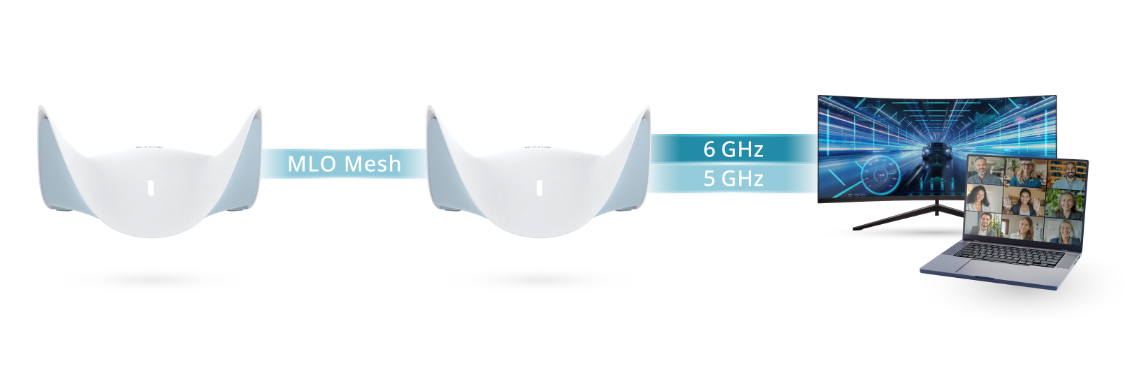 • Multi-Link Operation (MLO) Technology: Simultaneously transmits data across different bands to minimize congestion
