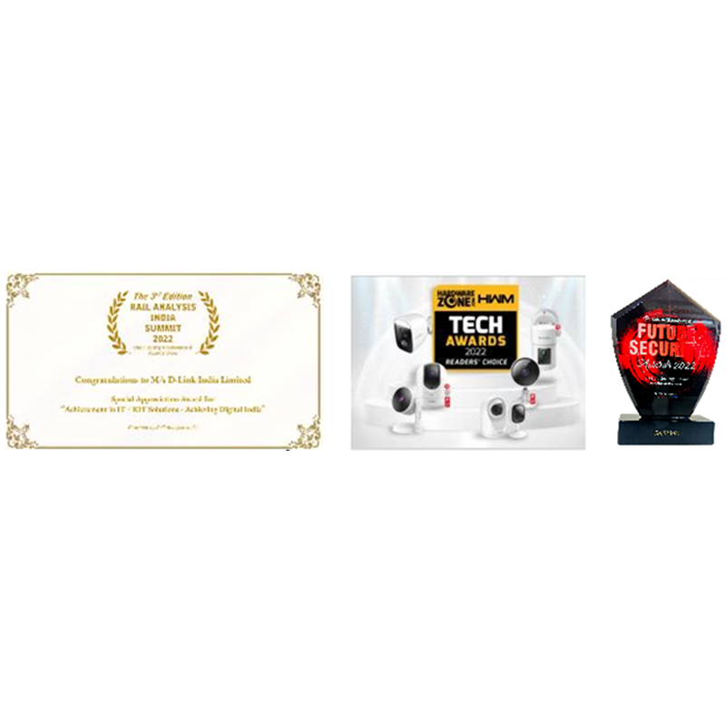 D-Link wins the Indian ‘Special Appreciation Award 2022’ for Achievement in IT / IOT Solutions, the Singaporean ‘HardwareZone Readers’ Choice Award’ for Best IP Camera Brand, and Indian GajShield’s ‘Best Data Security Firewall Vendor the Year Award.’