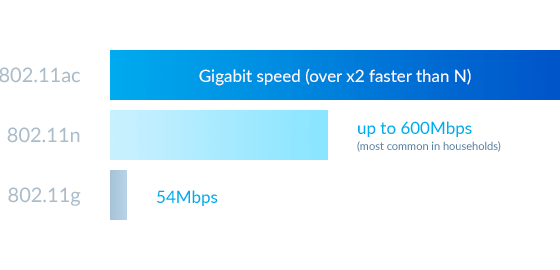 Wireless AC provides Gigabit wireless speeds with x2 the performance.