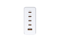 The DCF-241 240W GaN Charger powers up to five devices at once, your laptop, cell phone, tablet, smartwatch, and more via four USB-C ports and one USB-A port. Say goodbye to cable chaos and bulky adapters. With a space-saving stand, it keeps your desk tidy and your workflow fully powered.