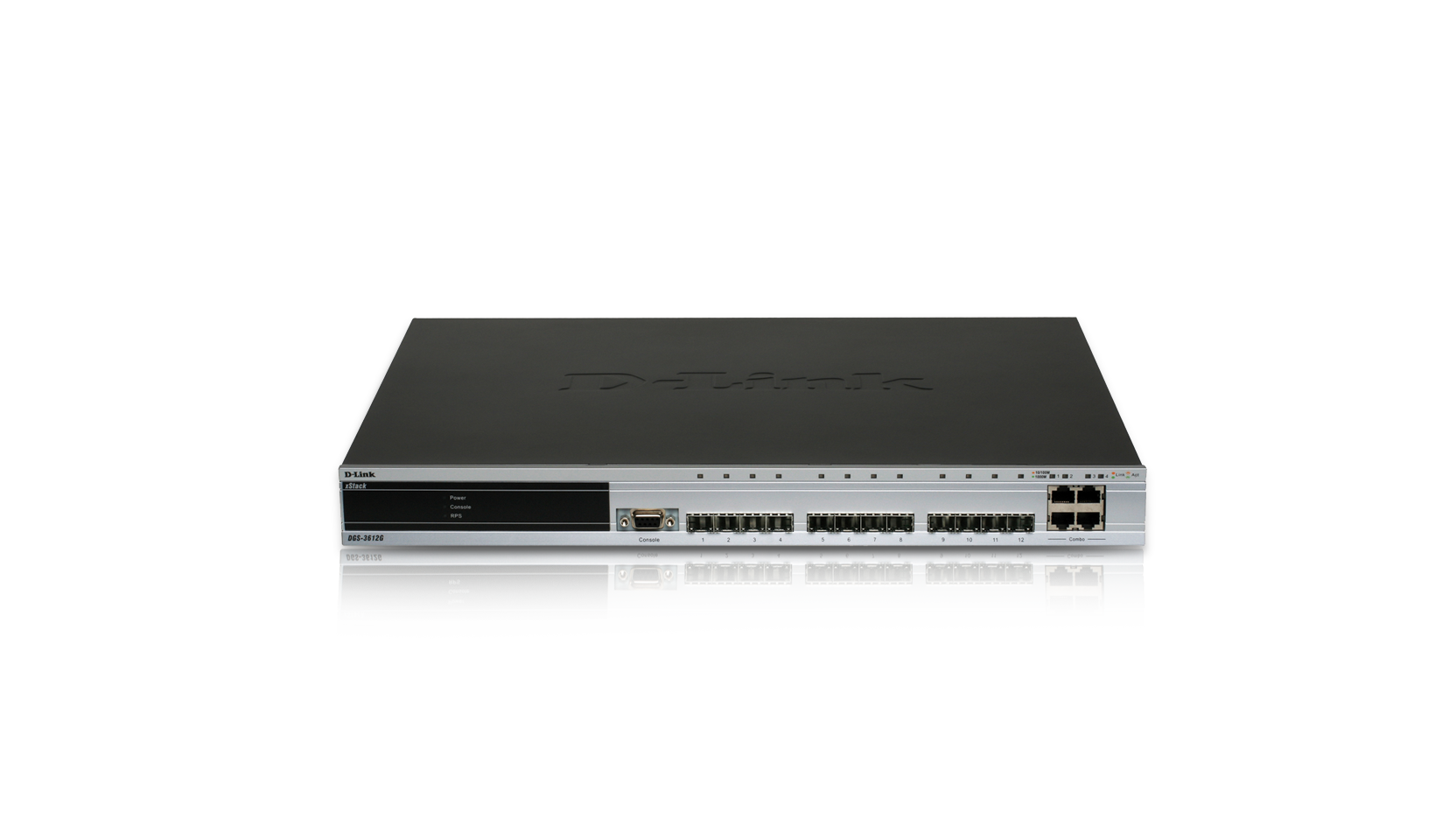 • xStack® Managed 12-Port Gigabit SFP Standalone L3 Switch with 4 Combo 1000BASE-T Ports, IPv6