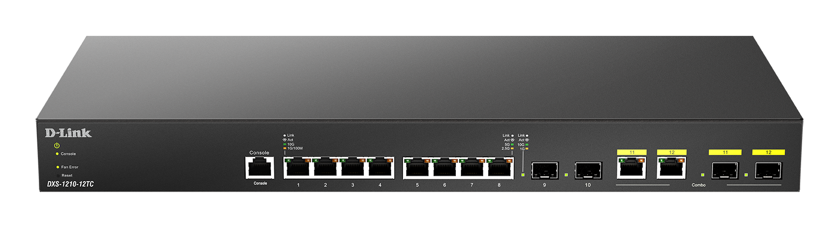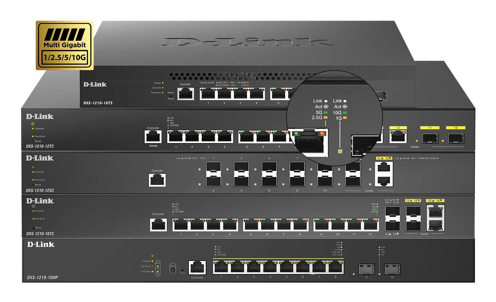 The DXS-1210 series includes layer 2 features such as port mirroring, Spanning Tree Protocol (STP), and Link Aggregation Control Protocol (LACP). They also support IP interfaces, ARP, IPv6 Neighbor Discovery (ND), default routing, IPv4/IPv6 static routing, IGMP and MLD Snooping, auto voice and surveillance VLAN, LLDP and LLDP-MED.