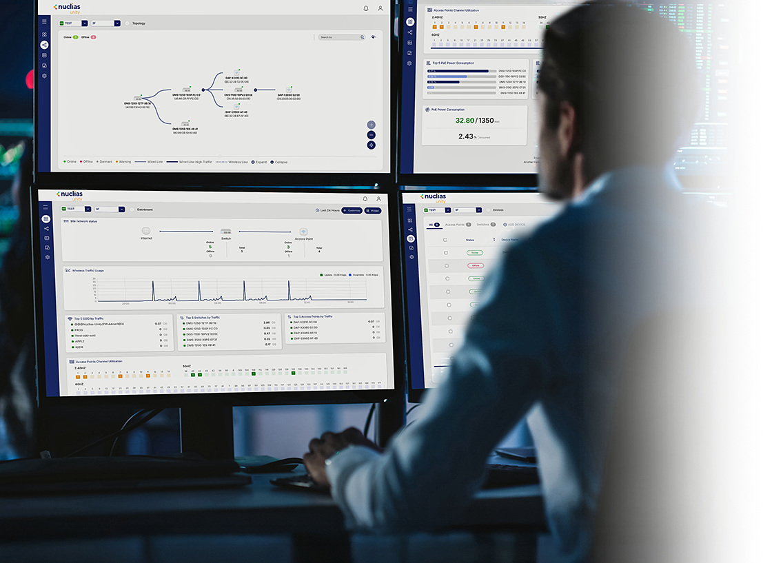 Nuclias Unity is your single pane of glass for complete, cloud-based network control. Unify the setup, monitoring, and security of all your APs and switches from one intuitive dashboard. Visualize your entire network on a live topology map, push centralized configurations with a click, and get proactive alerts. Deploy faster, troubleshoot smarter, and simplify your IT life and reclaim your time.