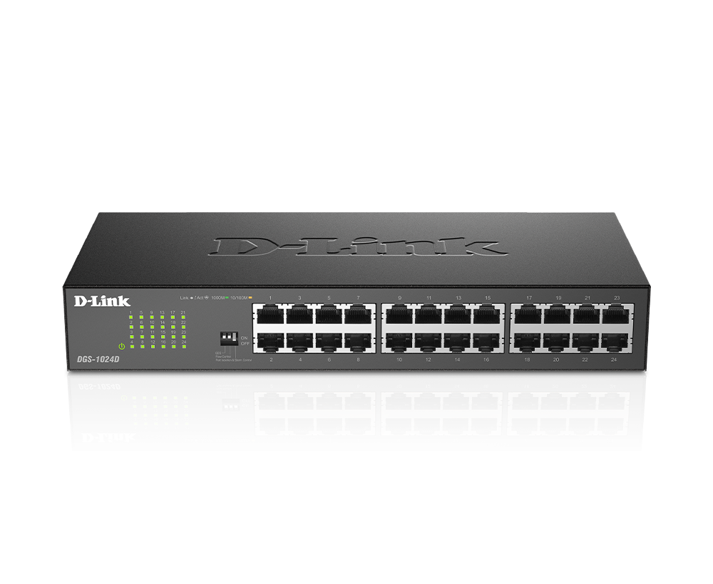 The D-Link DGS-1024D 24-Port Unmanaged Gigabit Switch offers an economical way for SOHO and Small-to-Medium Businesses (SMB) to take advantage of Gigabit Ethernet speeds while reducing energy consumption and minimising noise output.