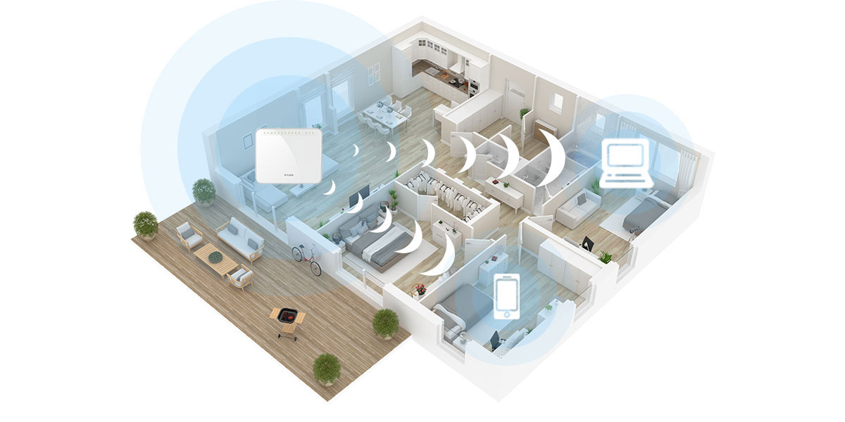 The DSL-G2452GR’s antennas have been carefully designed to ensure that you will get little to no dead space in any environment. The high-powered amplifier sends Wi-Fi to the farthest corners of your home, while high gain antennas extend the maximum range possible.