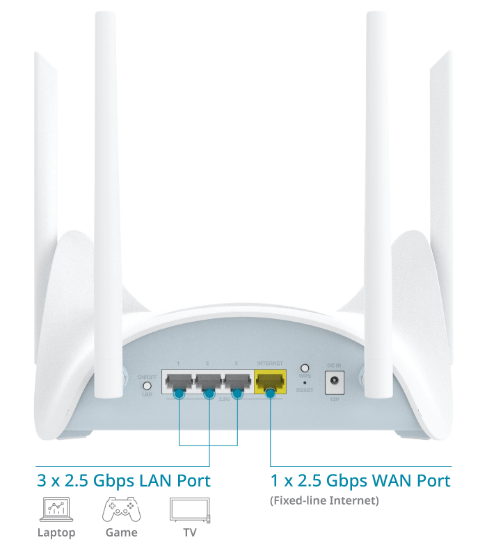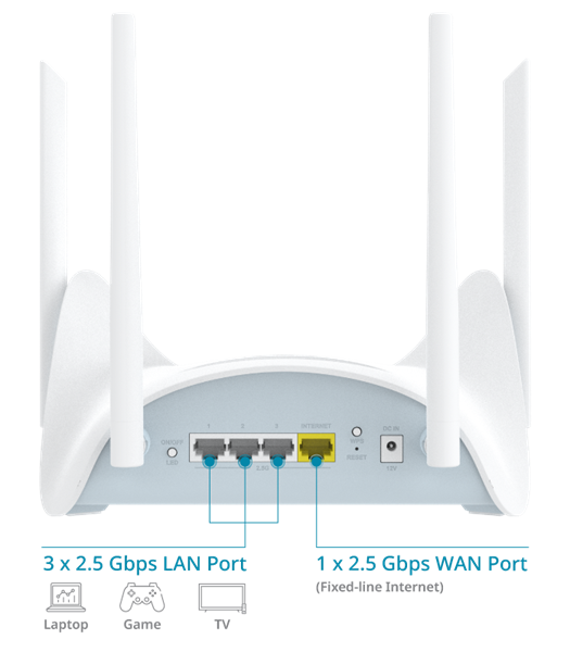 Simultaneously transmits data across different bands to minimize congestion - Gigabit Connectivity: A 2.5-Gigabit WAN port and 3 x 2.5-Gigabit LAN ports