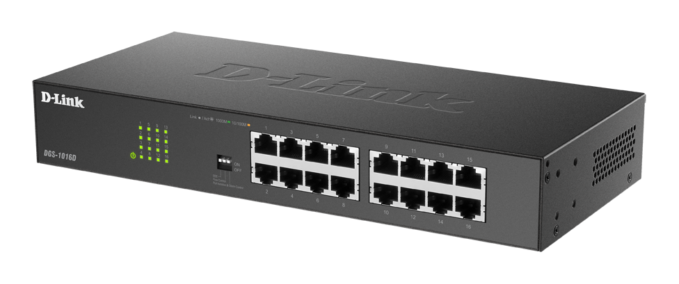 The D-Link DGS-1016D 16-Port Unmanaged Gigabit Switch series offer an economical way for SOHO and Small-to-Medium Businesses (SMB) to take advantage of Gigabit Ethernet speeds while reducing energy consumption and minimising noise output.