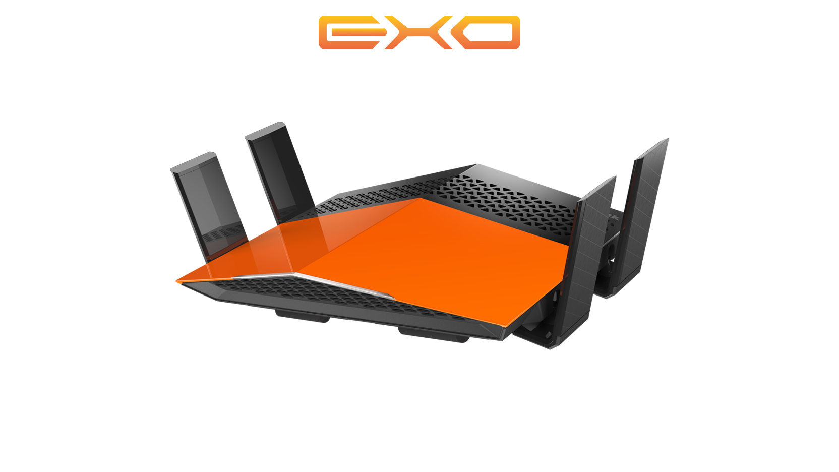 D-Link announces the EXO Router Series in an orange housing with a focus on the antenna design and power.