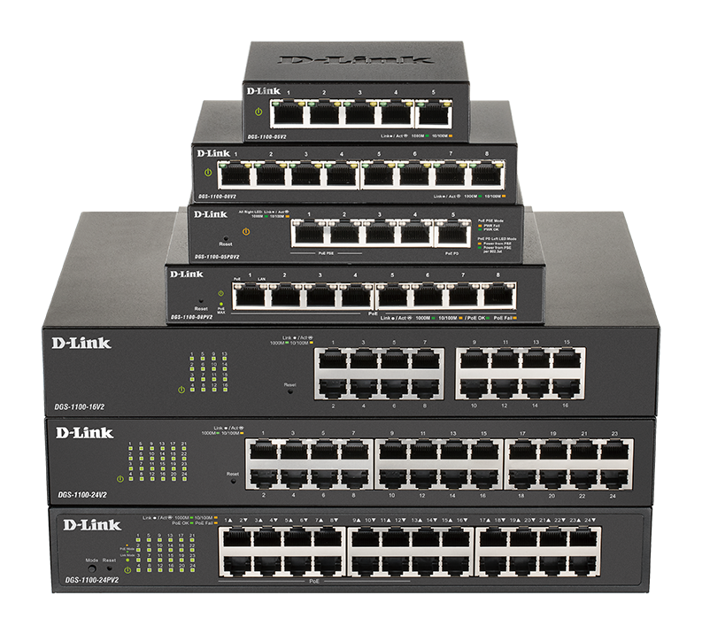 The DGS-1100 Smart Series includes a range of high power budget PoE-enabled switches for businesses looking to power larger deployments of VoIP phones, wireless access points or network cameras.
