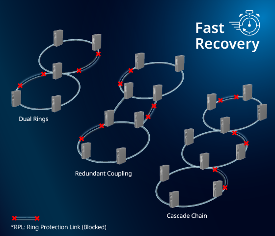 ERPS ensures fast recovery, reliable connectivity, and seamless network restoration
