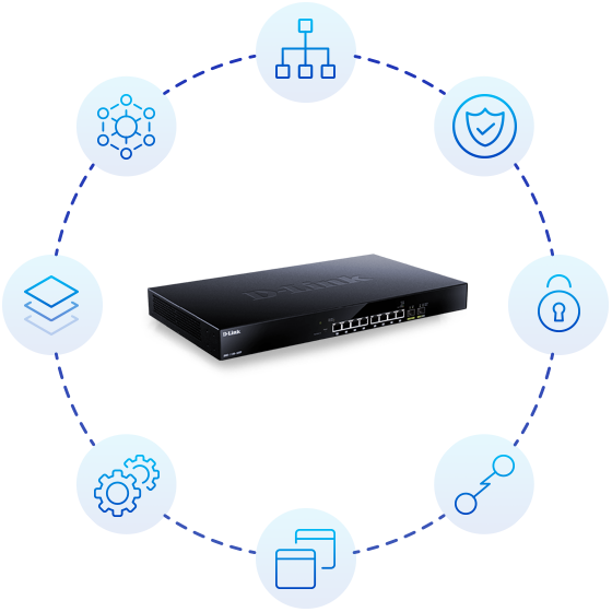 The innovative D-Link Safeguard Engine protects the switches against traffic flooding caused by malicious attacks and increases overall network reliability.