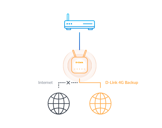 Seamlessly switch to a 4G LTE mobile internet backup network when your broadband internet goes down, with download speeds of up to 150 Mbps, so you can keep using the internet without interruptions.