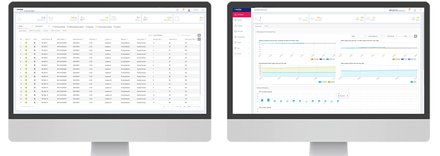 The DXS-1210 Series switches support the Nuclias Network Controller for centralized management, simplifying device configuration and enhancing network efficiency. Features like device discovery, real-time monitoring, and updates ensure robust control and optimized operations.