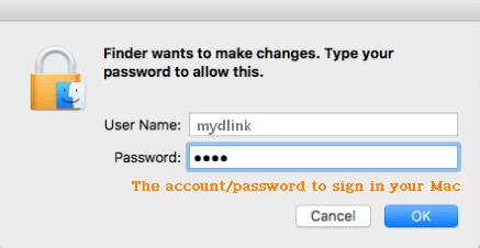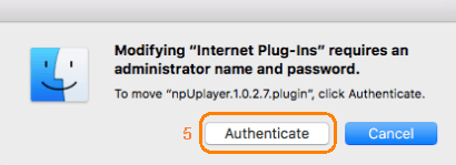 5. Click Authenticate and type Mac’s password to authorize installation of mydlink player plugin.