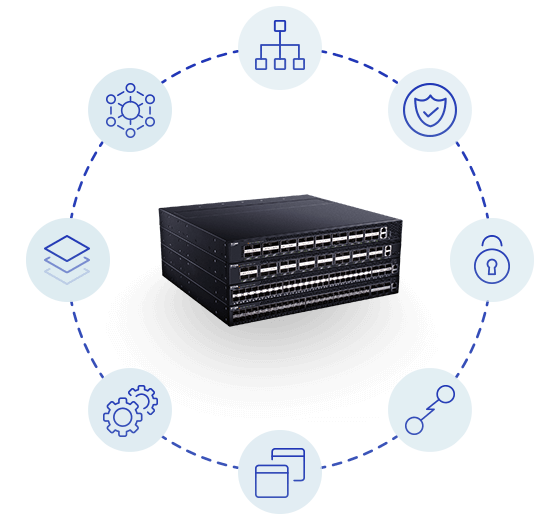 Le routage L3 avancé pour l’intégration dans l’entreprise, y compris OSPF, BGP, Graceful Restart, Bidirectional Forwarding Detection (BFD) et L3 multicast.