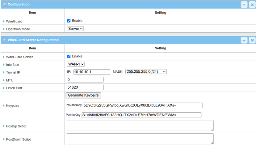 - The WAN access of WireGuard Server devices must have a global IP.