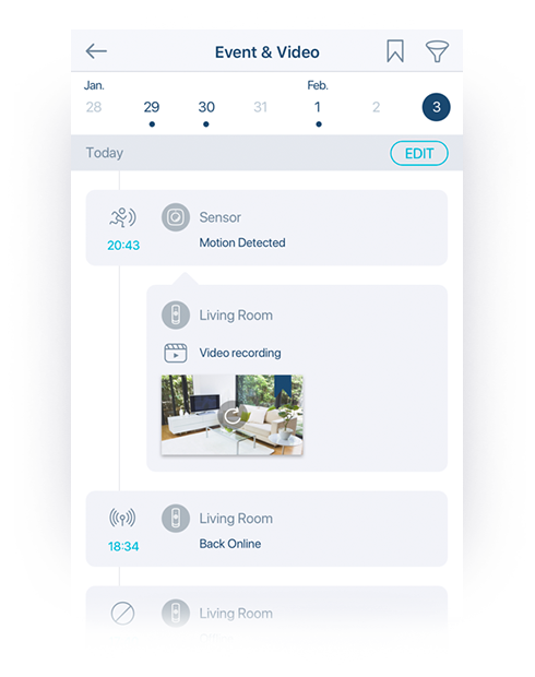Rich push notifications allow you to see more of what's happening, and gives you the option to choose actions like see the Live View, or call a neighbour, all without unlocking your phone and logging into the mydlink™ app.
