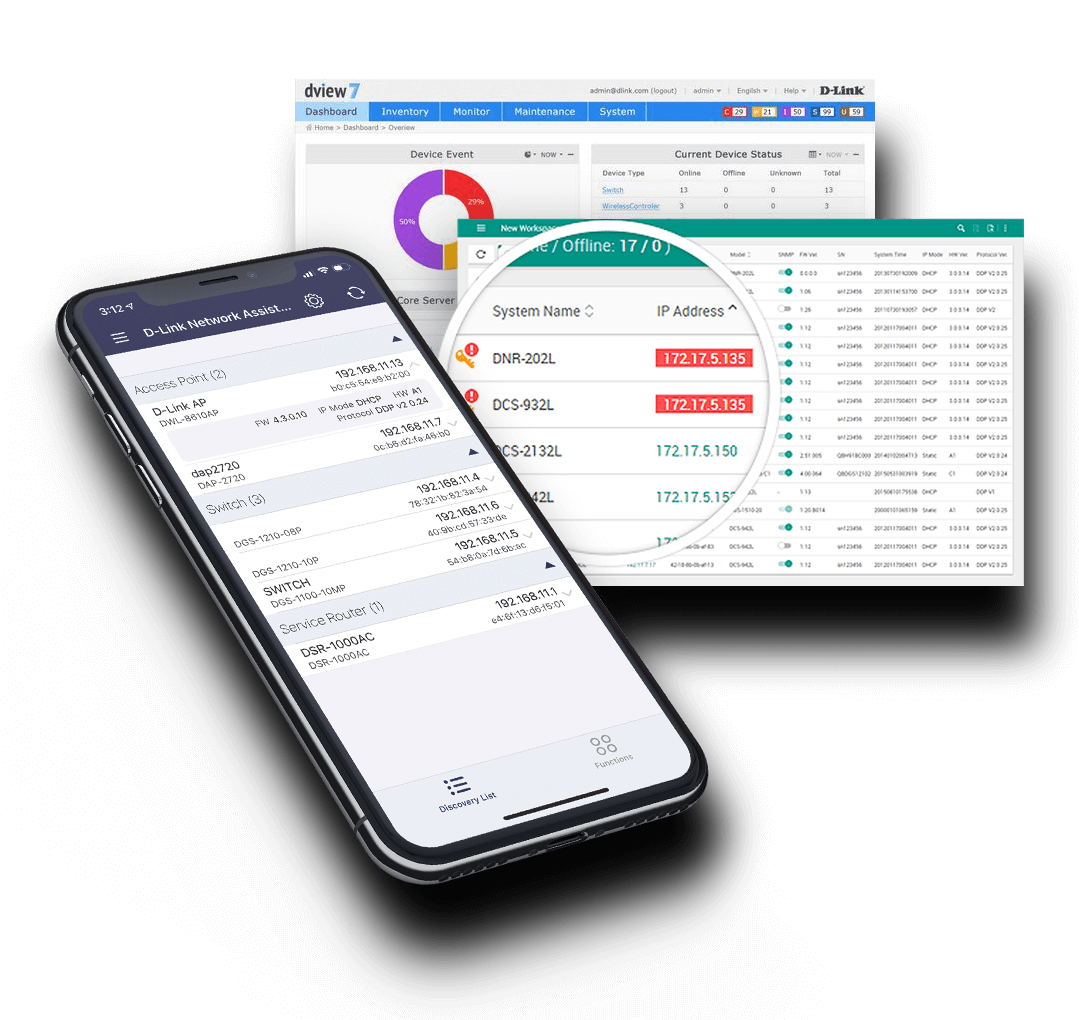 D-Link Network Assistant (DNA) is our latest software for admins to easily discover, configure and control their network down to the port level. We also provide an additional legacy software that authorises them to configure multiple large wired/wireless device networks with D-View 7 for centralised management to reduce costs and maintenance.