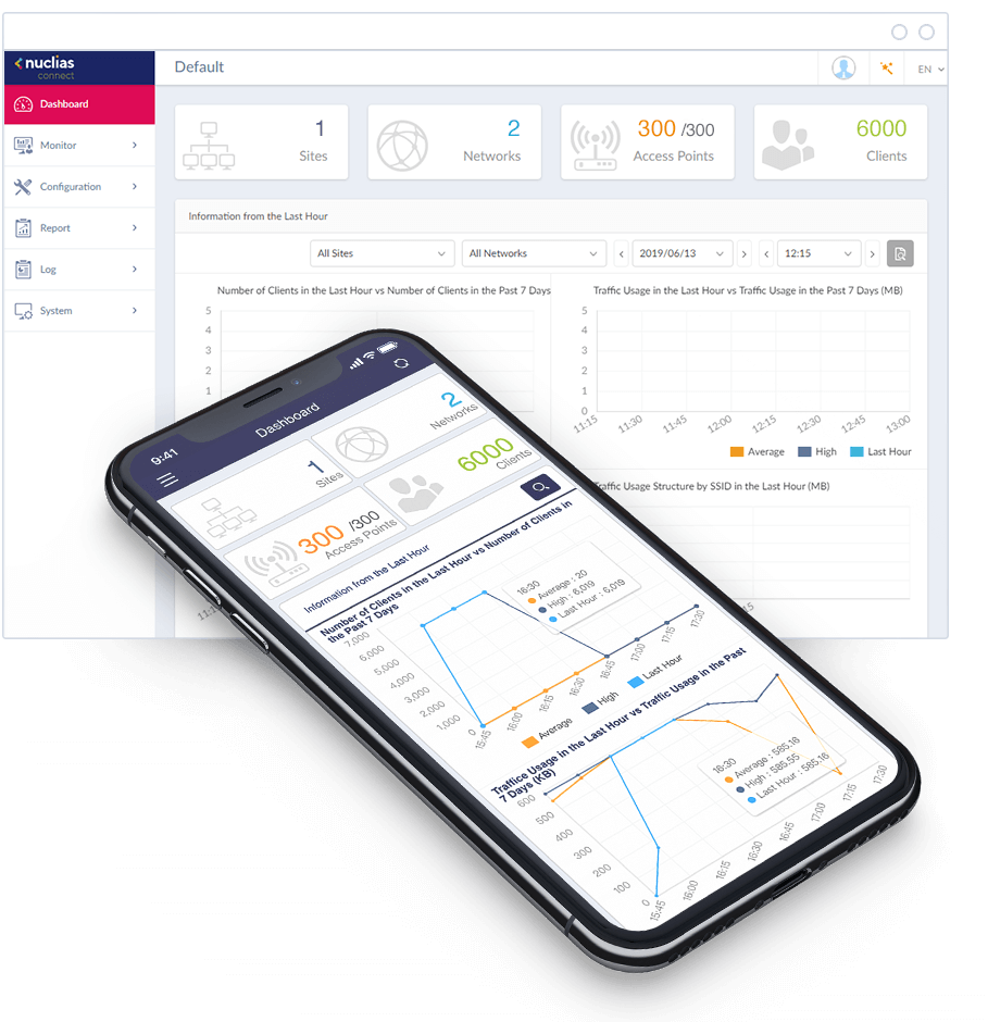 Med Nuclias Connect kan du administrera och få översikt över ditt nätverk från valfri plats med internetanslutning. Det ger omfattande kunskaper om nätverket och användarna genom trafikanalyser och statusrapporter, som är lätta att följa upp i det intuitiva gränssnittet via en webbläsare eller vår app. Informationen från trafikdatan kan användas för att skapa affärsvärde, och du kan följa trafiken ända från nätverksnivå ner till enstaka accesspunkter.