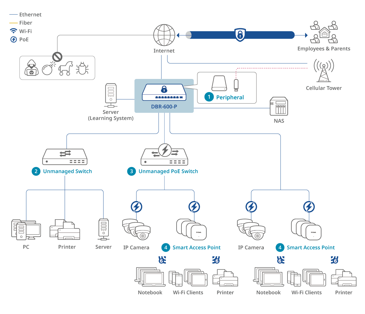 Discover the DBR-600-P business router's capabilities through our detailed topology diagram.