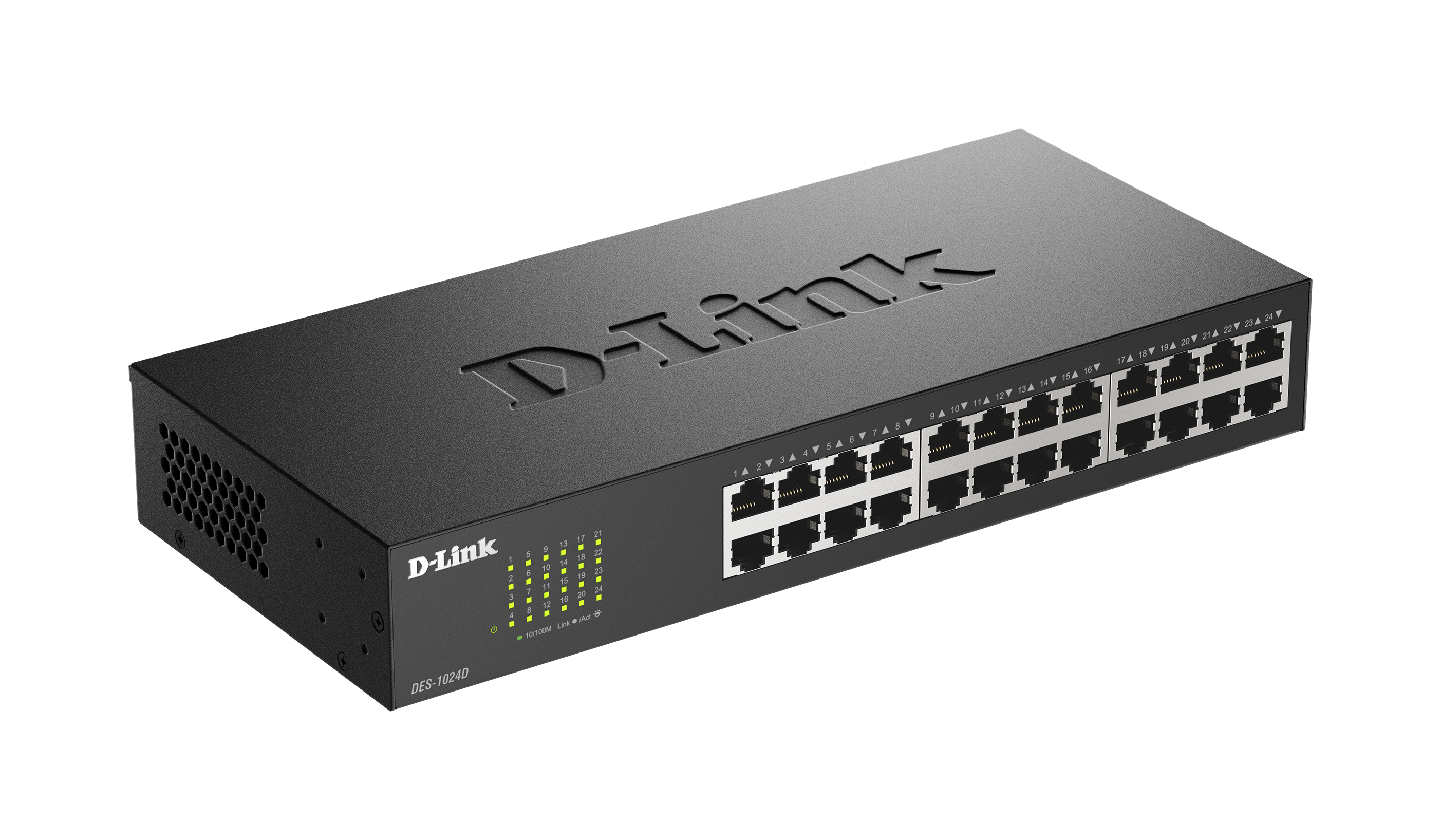 The DES-1024D 24-Port Fast Ethernet Unmanaged Desktop Switch is designed to enhance workgroup performance while providing a high level of flexibility. Powerful yet easy to use, this device allows users to simply plug any port to either a 10Mbps or 100Mbps network to multiply bandwidths, boost response time and satisfy heavy load demands.