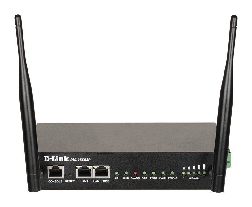 För ökad flexibilitet i tuffa miljöer kan DIS-2650AP monteras på en DIN-skena eller på en vägg och kan strömförsörjas via Power over Ethernet (802.3at PoE) eller genom dubbel likströmsingång.